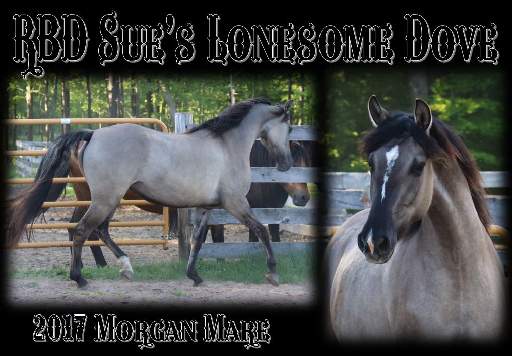 Amberfields Blaze N Dun is a baydun morgan stallion at Rafter Bar D ranch,RBD Sues Lonesome Dove is a blackdun or also called Grulla morgan mare
